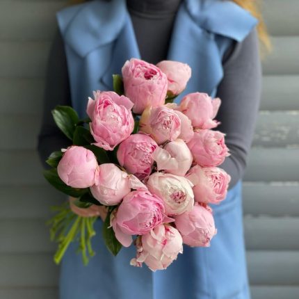 Букет из 15 розовых, голландских пионов
