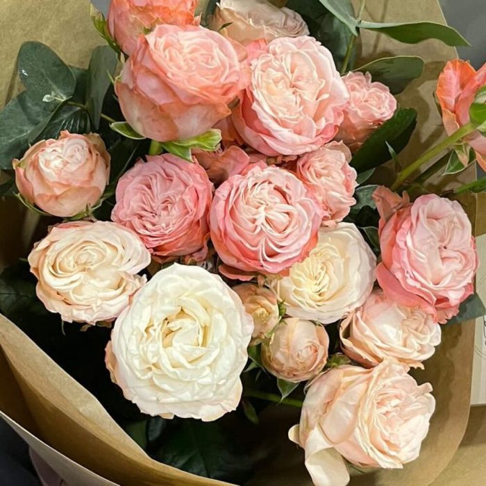 Гвоздики, Кустовые розы, Лизиантусы, Пионовидные розы, Розы