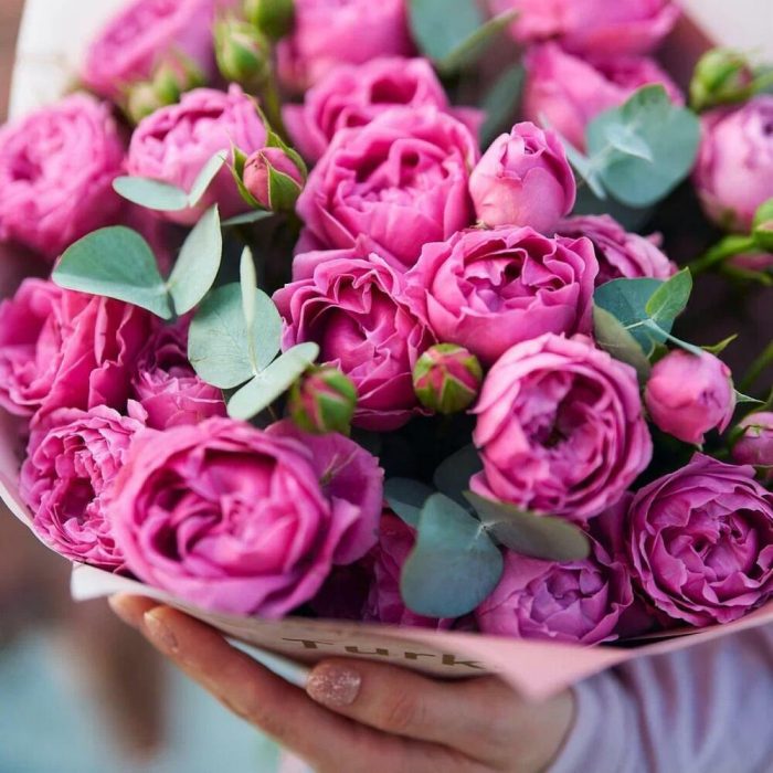 Гвоздики, Кустовые розы, Лизиантусы, Пионовидные розы, Розы