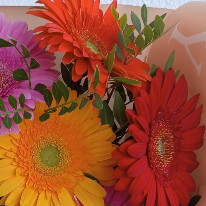 Весёлый микс ярких гербер подарит прекрасное настроение и море позитивных эмоций