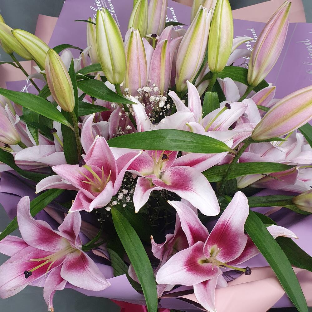 Ароматный букет розовых лилий 9 шт