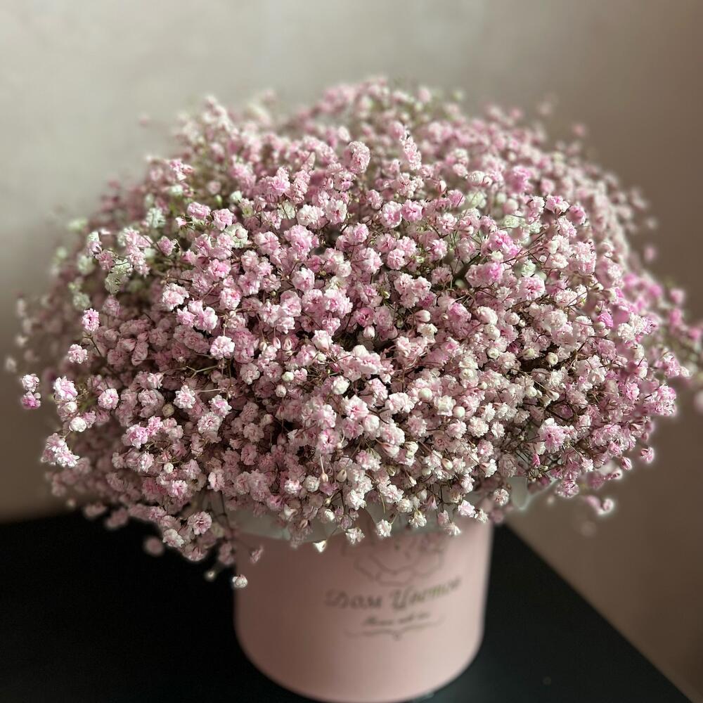 Гипсофила – 19 шт.Коробка шляпная – 1 шт.Флористическая губка – 1 шт.