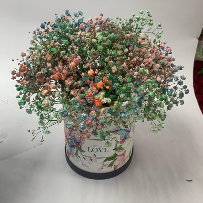 Гипсофила – 15 шт.Коробка шляпная – 1 шт.Оазис – 1 шт.