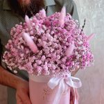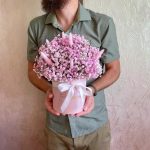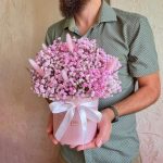 “Сиреневый туман” – композиция из гипсофилы в шляпной коробке