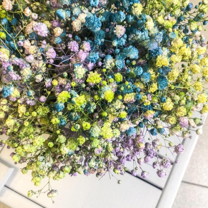 Гипсофила – 7 шт.Шляпная коробка – 1 шт.Оазис – 1 шт.Лента атласная – 2 шт.Пленка матовая – 1 шт.