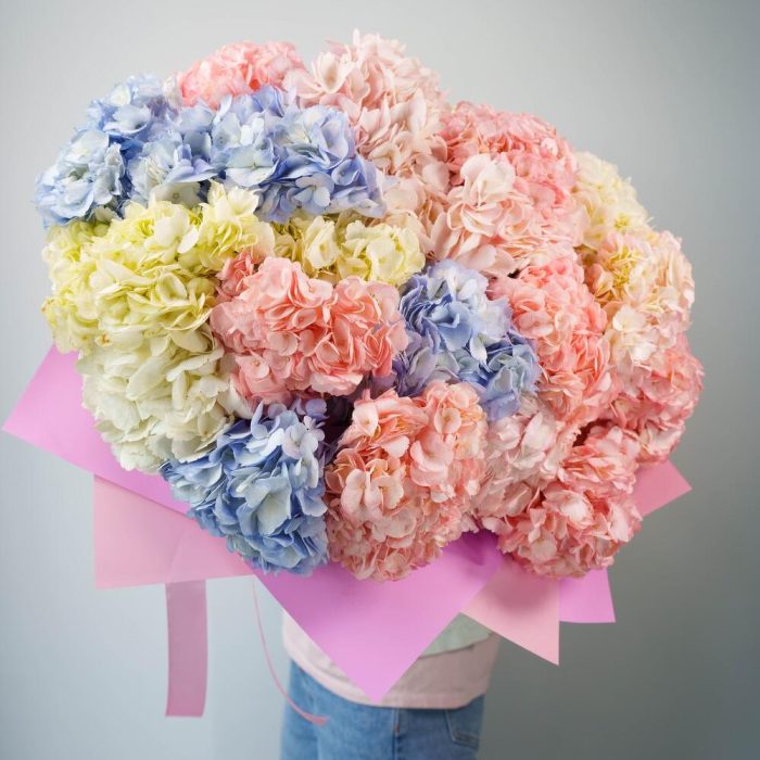 Гвоздики, Гортензии, Кустовые розы, Пионовидные розы, Розы