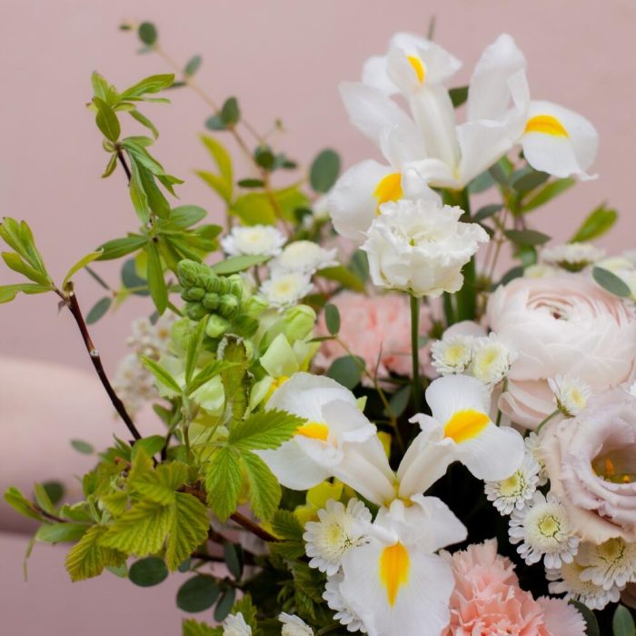 Категории: Гвоздики, Ирисы, Лизиантусы, Хризантемы
