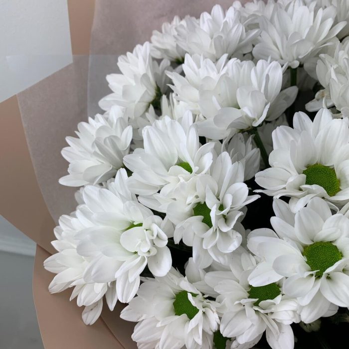 Лента – 1 шт.Хризантема кустовая – 7 шт.Пленка матовая – 1 шт.