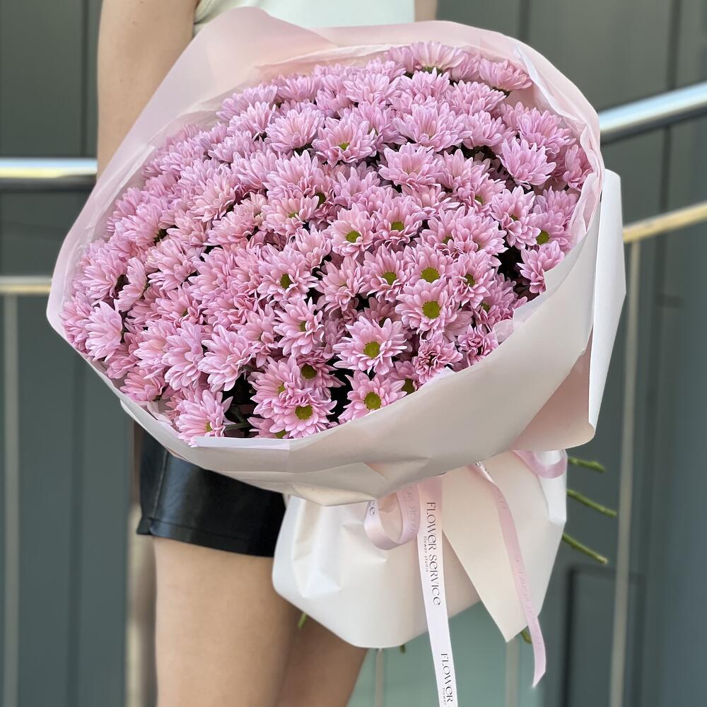 Букет из 25 веток нежно розовой хризантемы в оформлении!