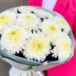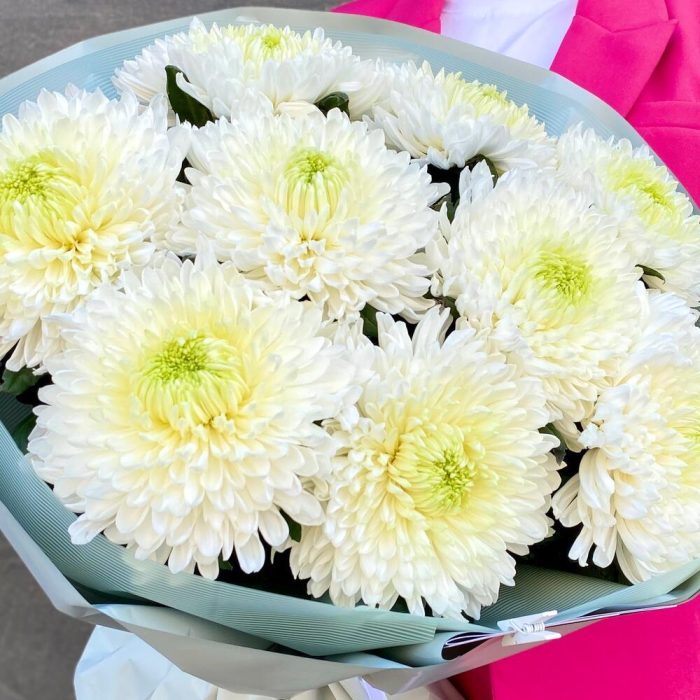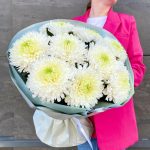 Лента атласная – 1 шт.Упаковка дизайнерская – 2 шт.хризантема штучная – 9 шт.