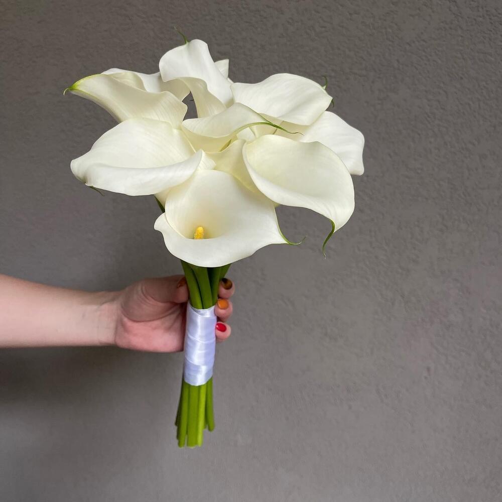 Букет из 15 розовых калл с эвкалиптом "Морион"