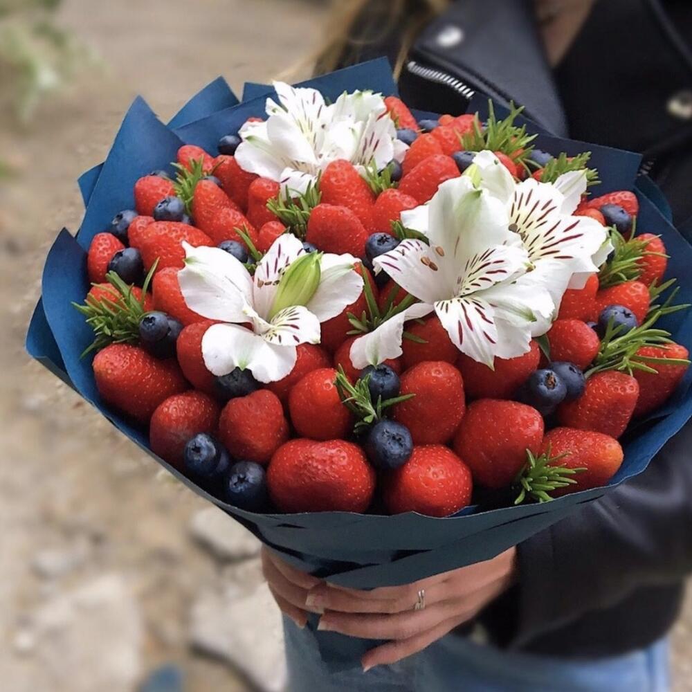 Клубника – 45 шт.Лилия белая – 1 шт.голубика 125 гр. – 1 шт.розмарин пучок – 1 шт.Упаковка дизайнерская – 1 шт.