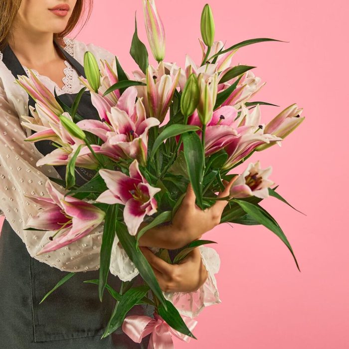 Лента атласная – 1 шт.лилия (розовый) – 3 шт.