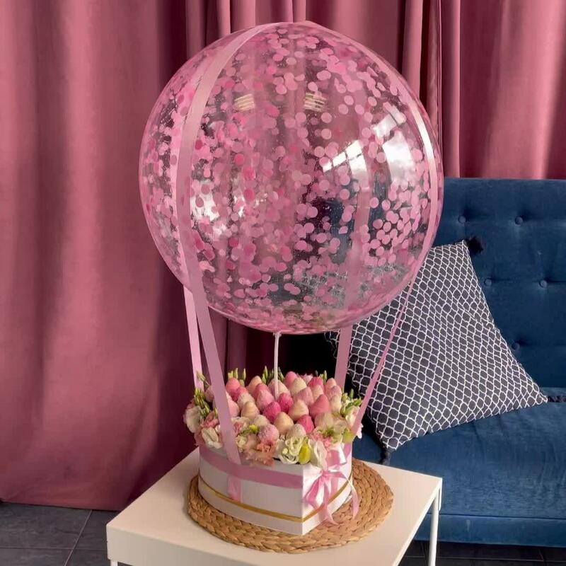 клубника в бельгийском шоколаде – 900 гр.воздушный шар с индивидуальной надписью – 1 шт.микс розовых и белых эустома – 11 шт.
