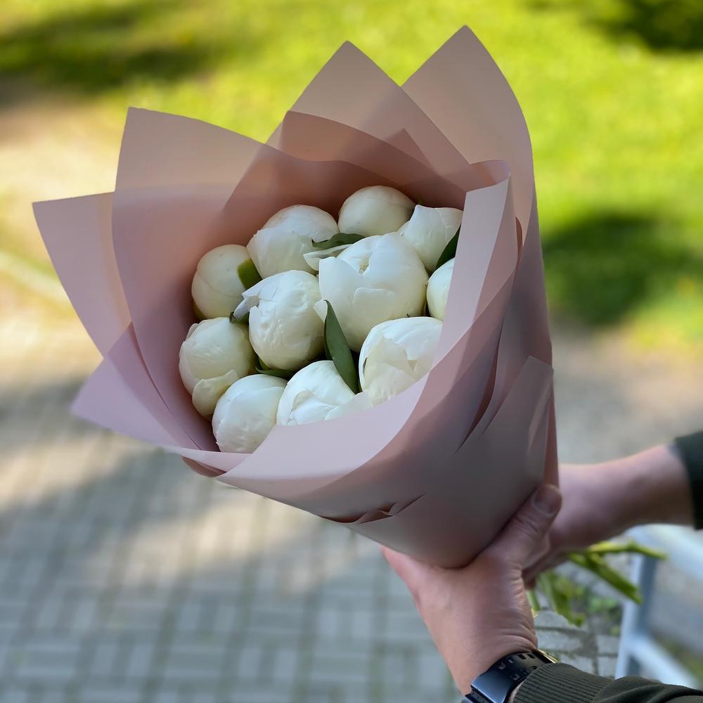 Пион – 11 шт.Лента атласная – 1 шт.Упаковка дизайнерская – 2 шт.
