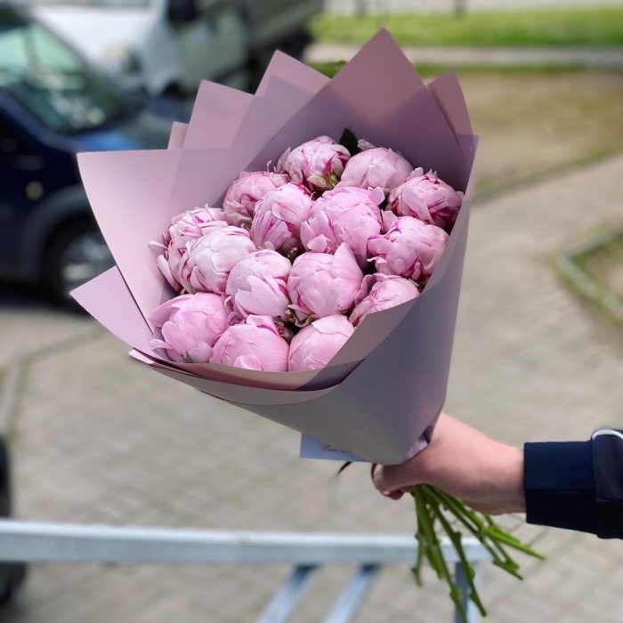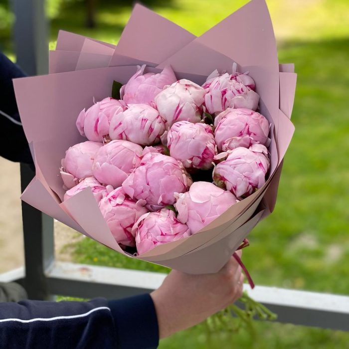 Лента – 1 шт.Пион Сара Бернар – 15 шт.Упаковка дизайнерская – 2 шт.