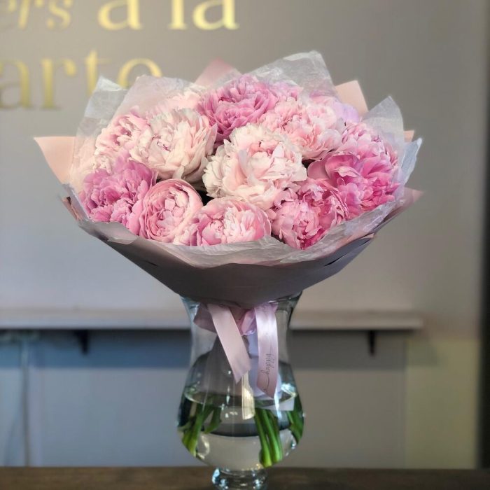 Упаковка дизайнерская – 1 шт.пион розовый премиум – 15 шт.