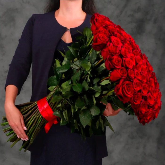 Метки: 101 роза, от 5000 руб, Роза 70 см