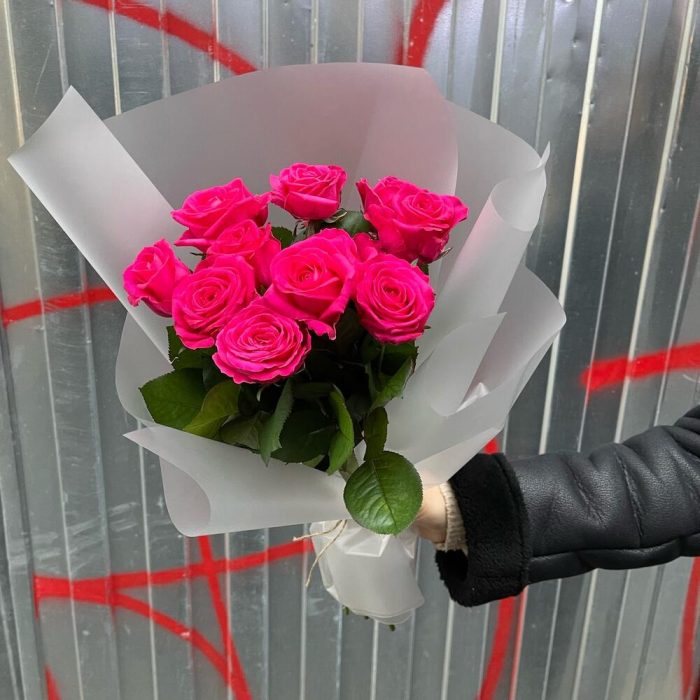 Роза розовая – 11 шт.Упаковка дизайнерская – 2 шт.