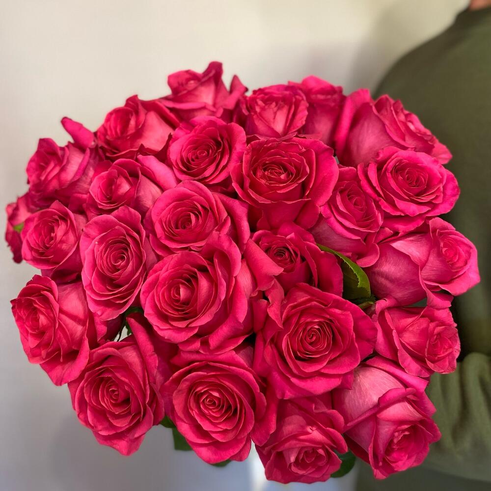 25 роз цвета фуксия монобукет