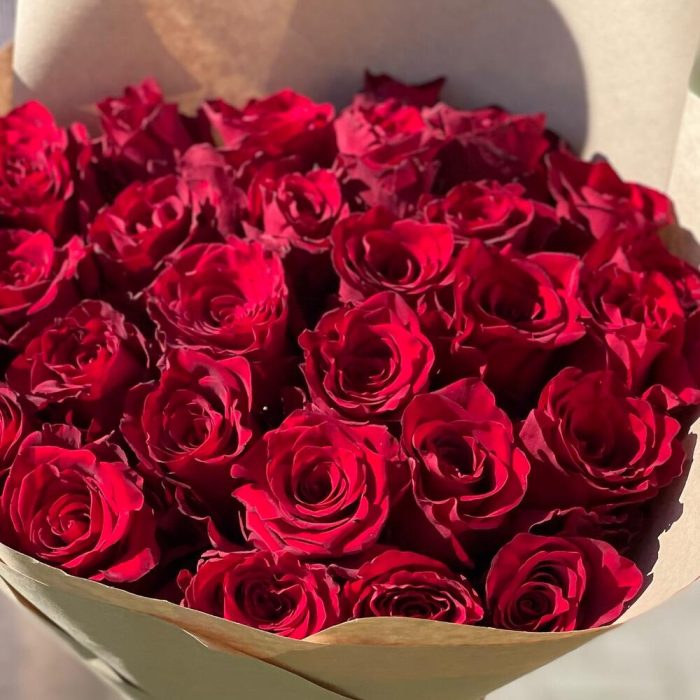 Роза Эксплорер – 29 шт.Упаковка крафт – 1 шт.Лента атласная – 1 шт.