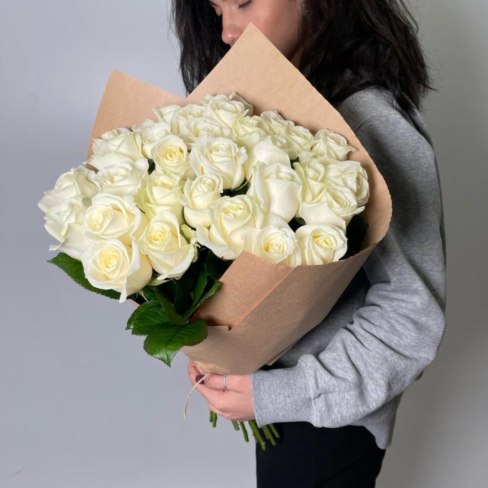 Крафт – 1 шт.Роза белая 50 см – 31 шт.
