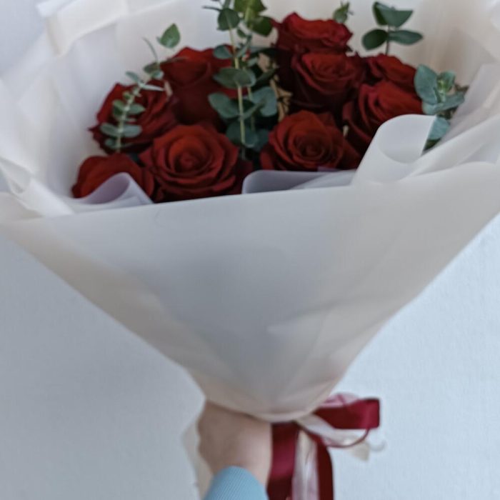 9 роз с эвкалиптом