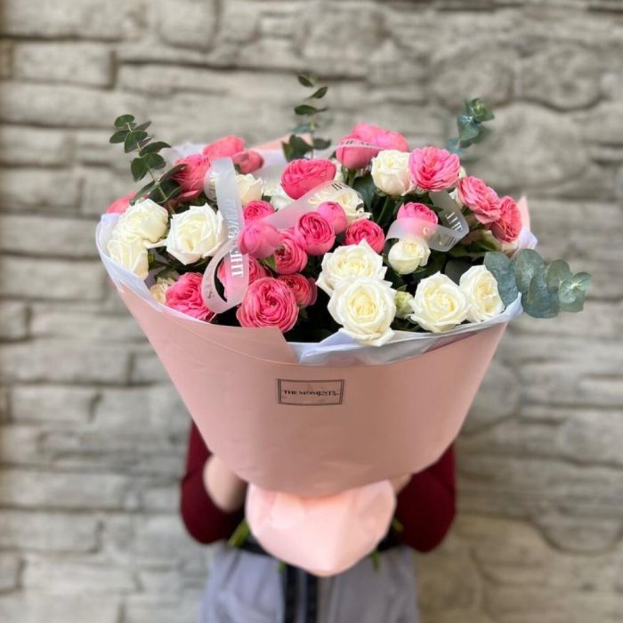Гвоздики, Лизиантусы, Розы, Тюльпаны