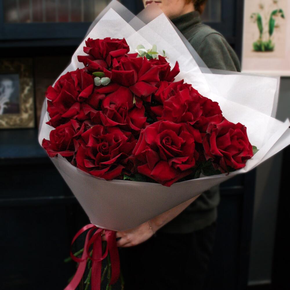 Большой букет из 11 красных французских роз