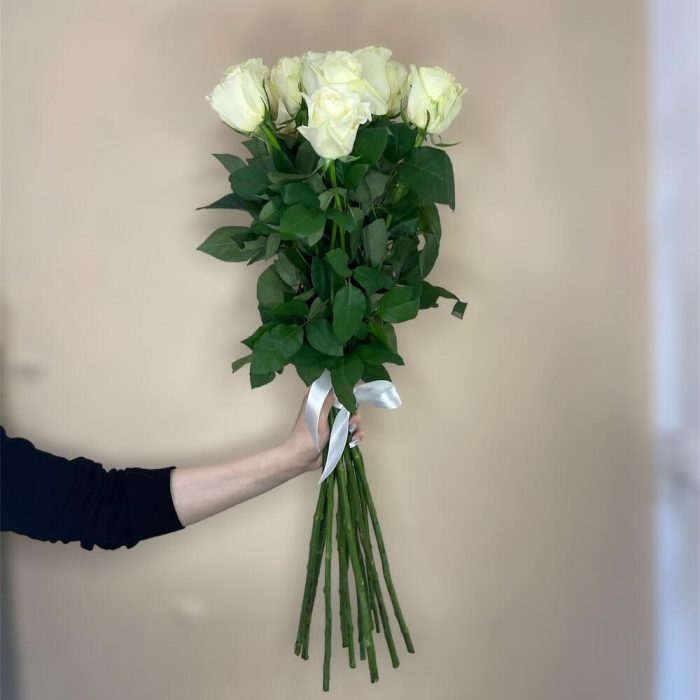Букет белых высоких роз 15 штук