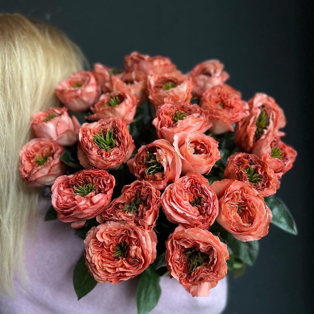 Букет Эксклюзивных пионовидных 25 роз «Мандарин»