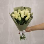 Букет из 15 белых роз 35-40 см (Кения) в стильной упаковке