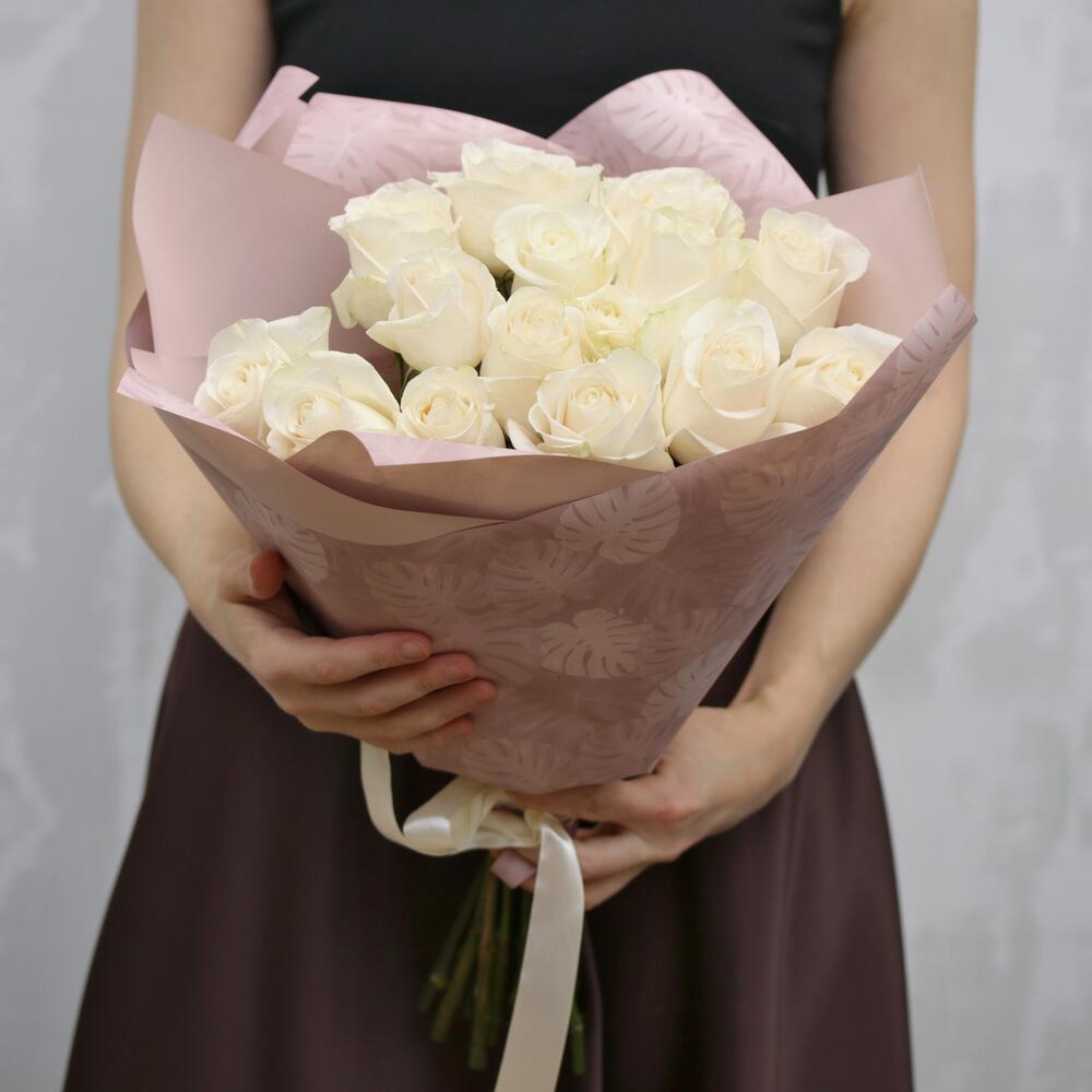 Букет из 15 белых роз 40-50 см (Эквадор) в стильной упаковке