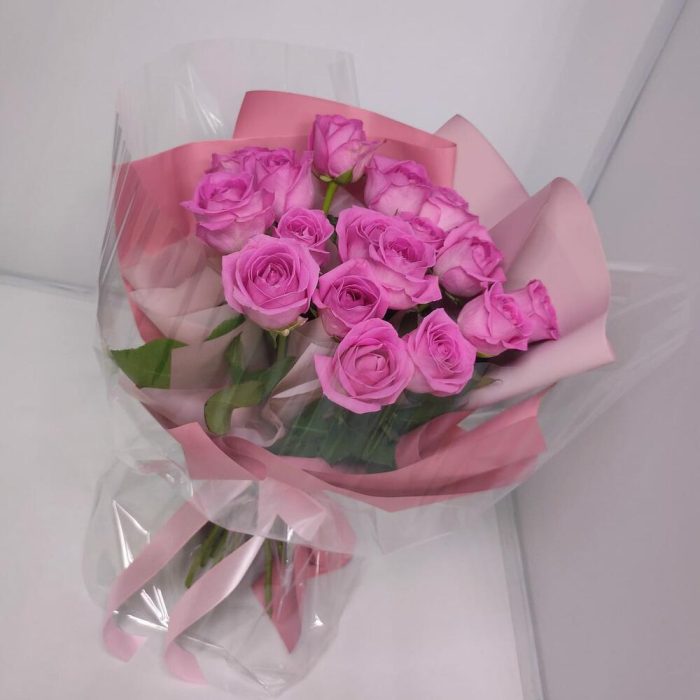Букет из 15 розовых роз в упаковке