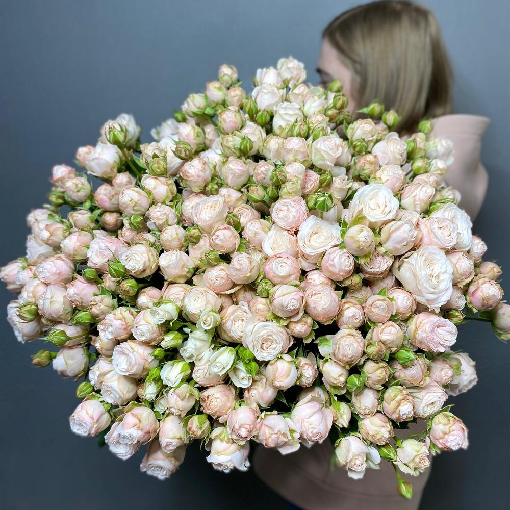 Лента атласная – 2 шт.Роза кустовая пионовидная – 35 шт.