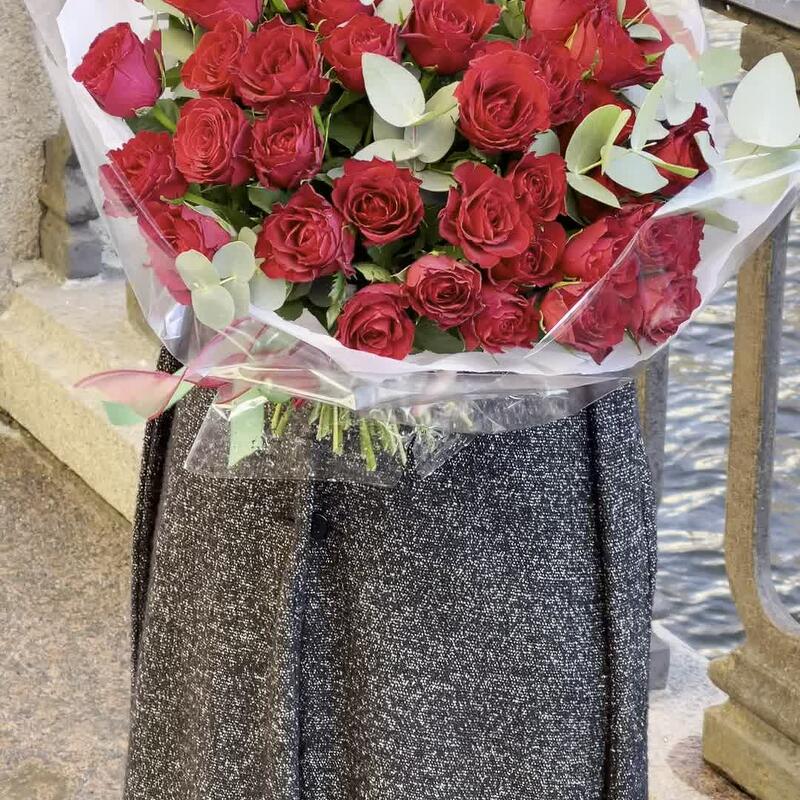 Эвкалипт – 3 шт.Роза – 51 шт.Упаковка дизайнерская – 1 шт.