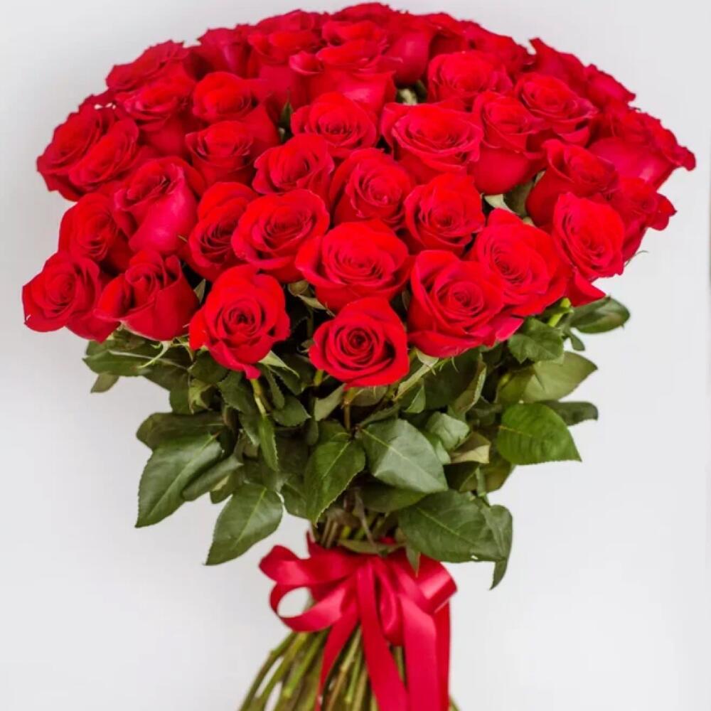 Букет из 51 красной розы 35-40 см (Кения) под ленту