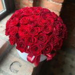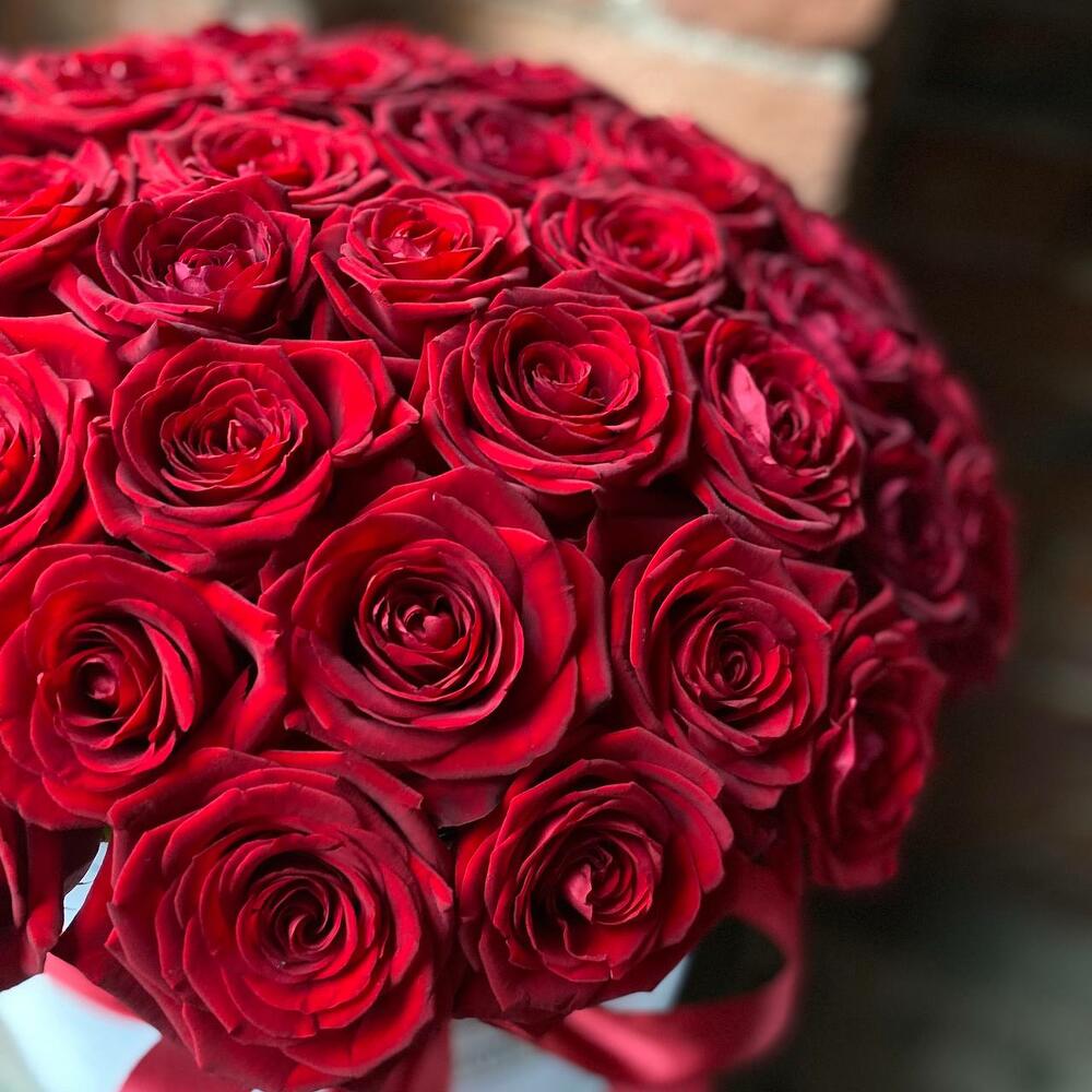 Букет из 51 красной розы в дизайнерской коробке “Роскошь красного”