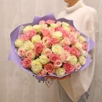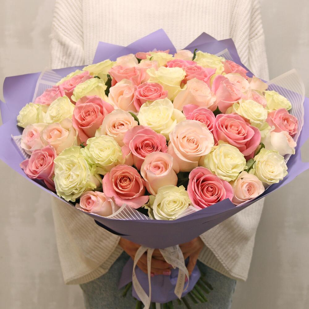 Букет из 51 розы premium нежный микс 40-50 см (Эквадор) в стильной упаковке