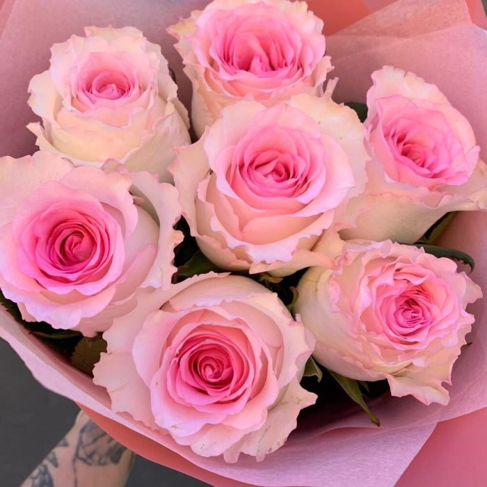 Букет из 7 розовых роз «Мандала»