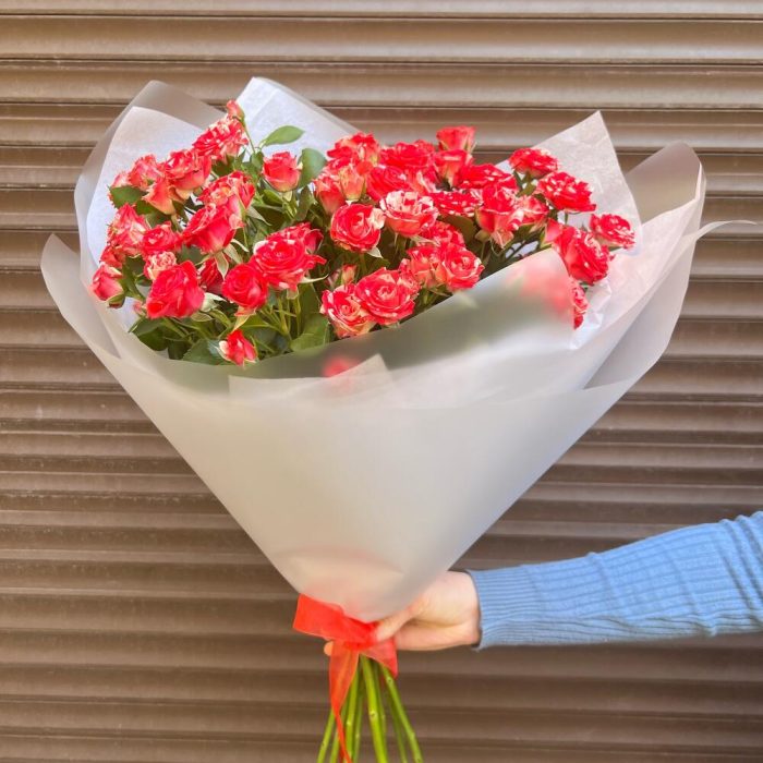 Тишью – 2 шт.Пленка матовая – 2 шт.фаервокс роза кустовая – 9 шт.