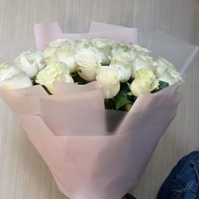 Метки: 25 роз, Белые розы, от 4000 до 5000 руб, Роза 70 см