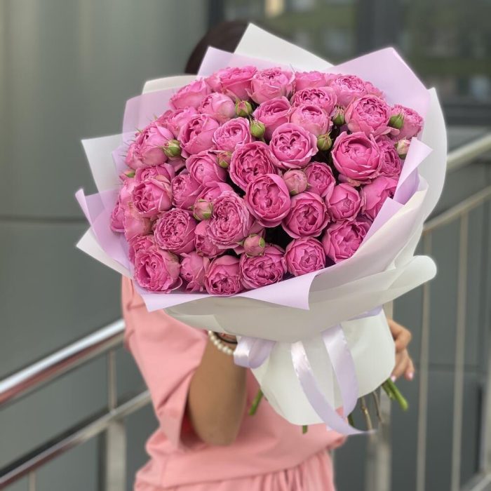 Писташ – 5 шт. Оформление – 1 шт. кустовая пионовидная роза misty bubbles – 15 шт.