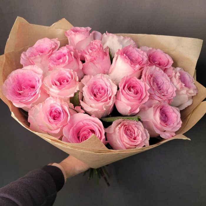 Роза Эквадор – 17 шт.Лента атласная – 1 шт.Крафт – 3 шт.