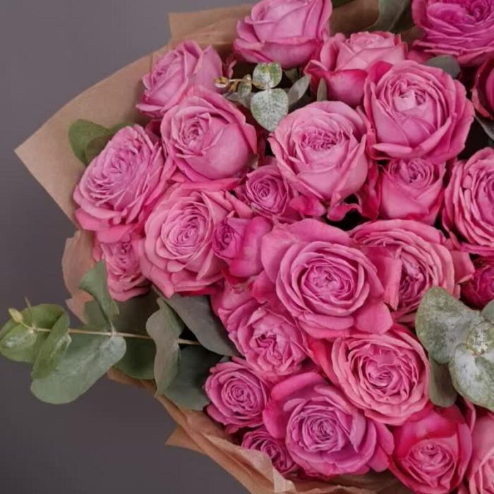 Эвкалипт – 2 шт.Упаковка – 1 шт.Аквапак – 1 шт.питательная смесь для срезанных цветов – 2 шт.роза кустовая артезия – 11 шт.