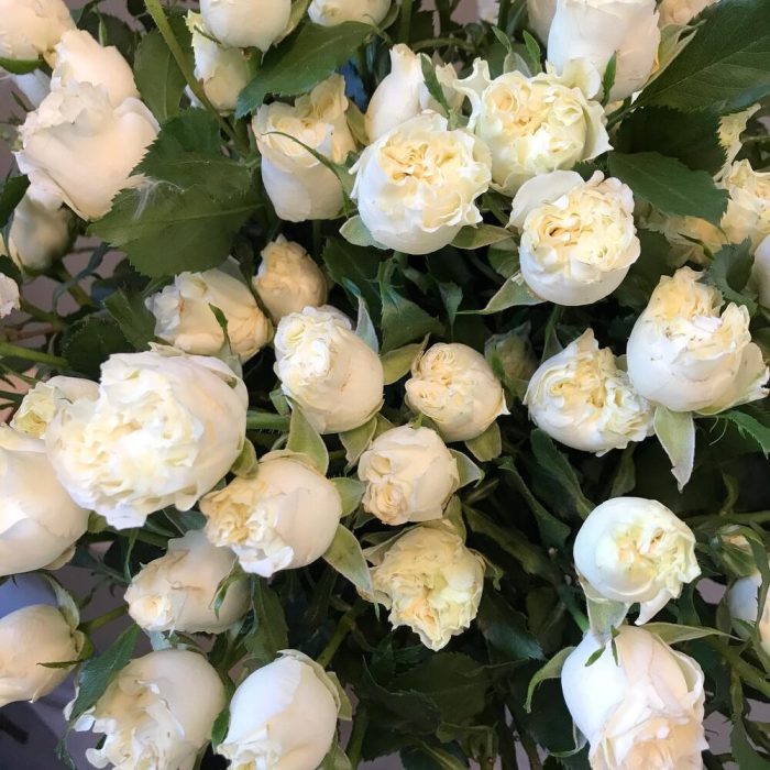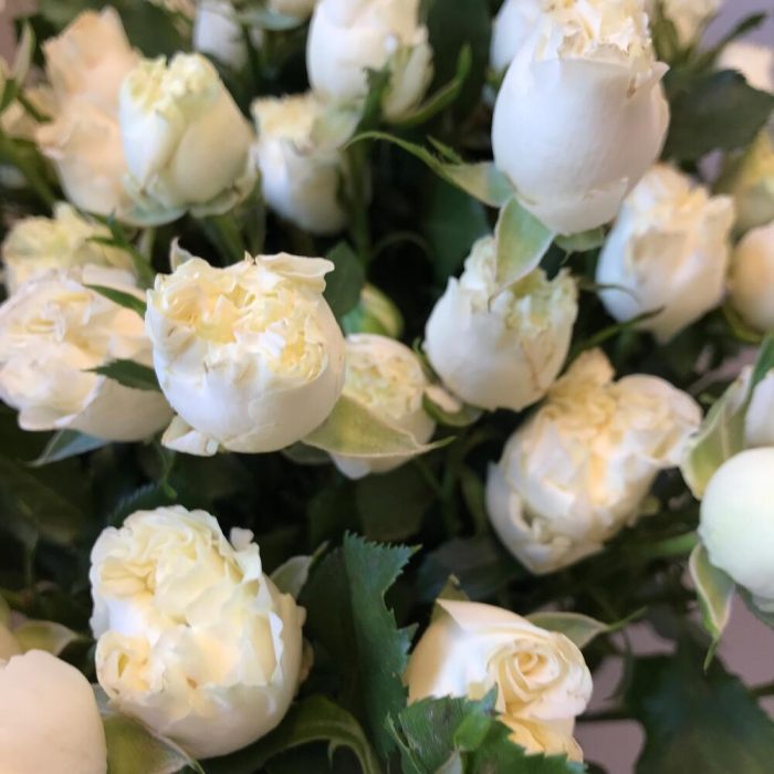 Лента атласная – 1 шт.Кустовая роза – 9 шт.
