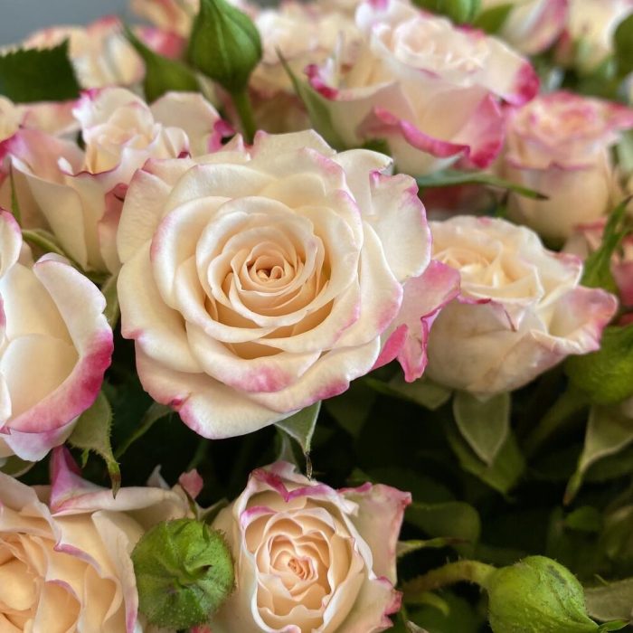 Гвоздики, Кустовые розы, Лизиантусы, Пионовидные розы, Розы