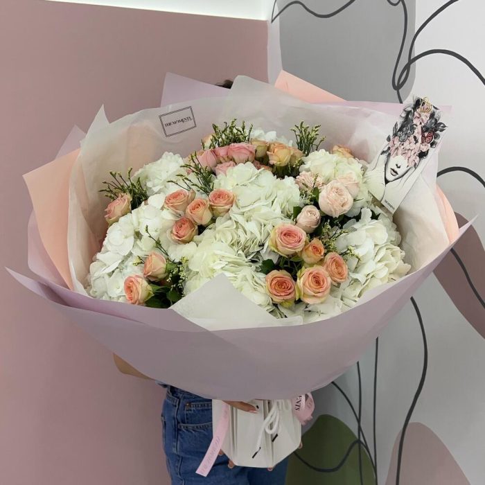 Альстромерии, Кустовые розы, Лизиантусы, Пионовидные розы, Розы, Ромашки