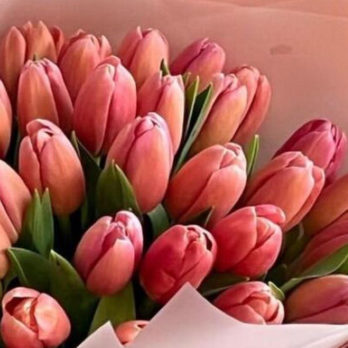 Тюльпан – 51 шт.Упаковка дизайнерская – 2 шт.Лента атласная – 2 шт.Открыточка с вашими пожеланиями – 1 шт.хорошее настроение – 100 шт.инструкция по уходу за цветами – 1 шт.коробка переноска – 1 шт.Кризал – 1 шт.